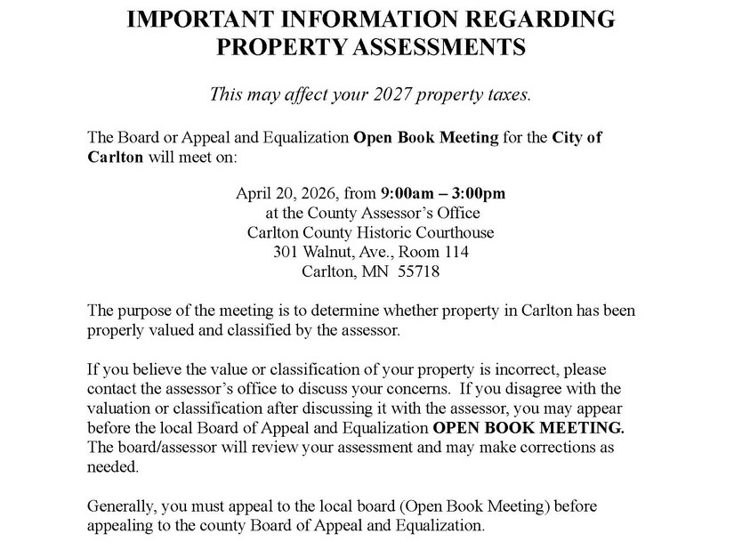 The City of Carlton has completed and submitted our service line materials inventory to the Minnesota Department of Health.
